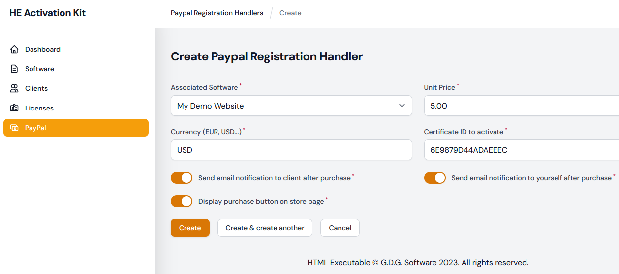 The PayPal Registration Handler is a powerful feature that allows you to sell licenses for your selected publication or ebook software using PayPal. With this tool, you can easily set up and manage your sales process, with several options available for customization.