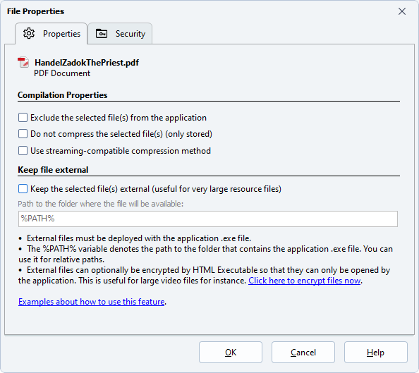 If the selected file is an HTML page, you have two tabs: Properties and Security. Otherwise, you only have the Properties one.
