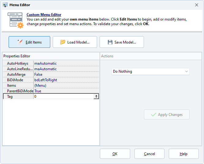 Menu Item Properties and Actions