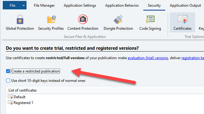 1.Navigate to Security => Certificates and toggle on Create a restricted publication.