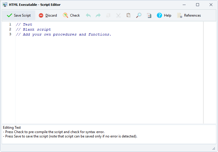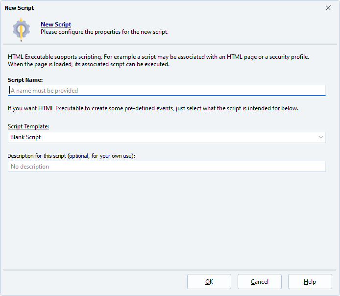 Finally, you can give an optional description to your script. However, it is not used by HTML Executable at all.